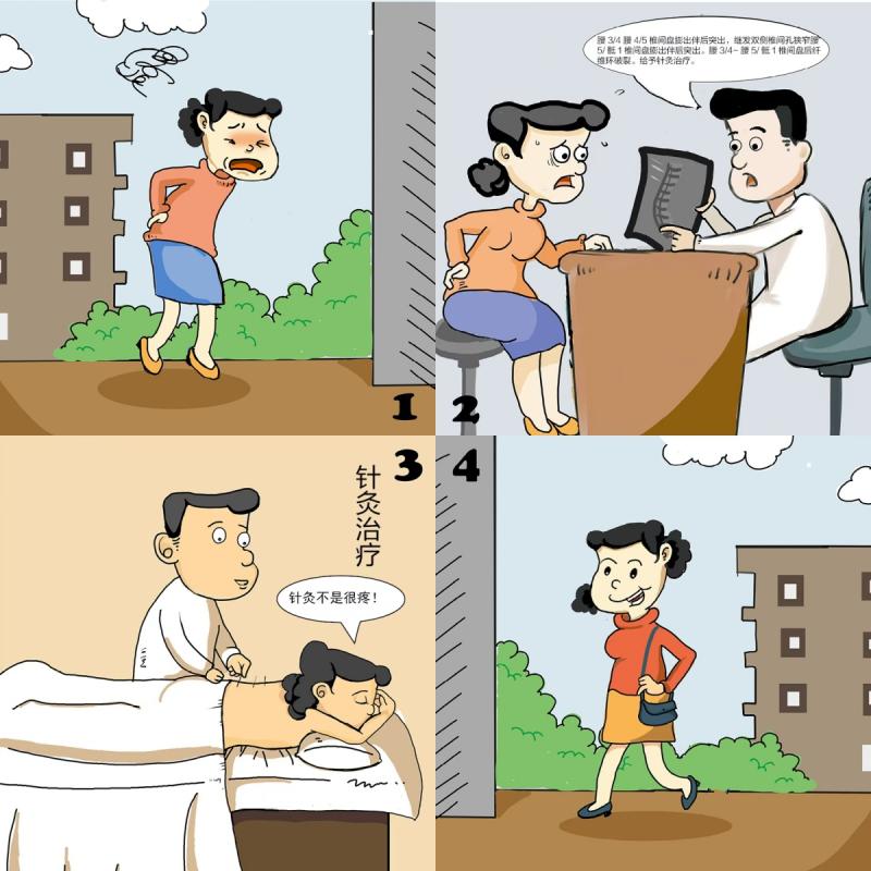 患者,女,38岁,腰痛1天来就诊,痛苦面容,只能弯腰小步缓慢行走。MRI示:腰3/4、腰4/5椎间盘膨出伴后突出,继发双侧椎间孔狭窄。腰5/骶1椎间盘膨出伴后突出。腰3/4-腰5/骶1椎间盘后纤维环破裂。给予针灸治疗,初诊起针后患者即诉腰痛明显缓解,可以直腰行走。第二次复诊,患者诉仅夜间腰疼2小时,其他时间无任何痛苦,五次治疗后疼痛完全缓解。