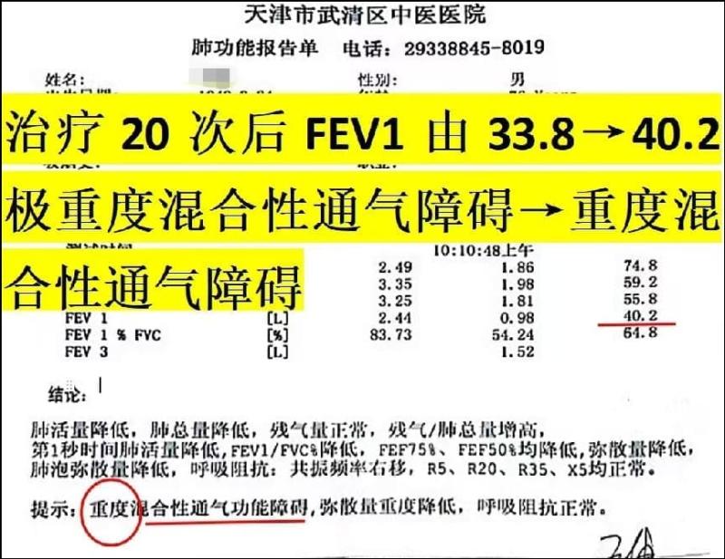 治疗前后肺功能: